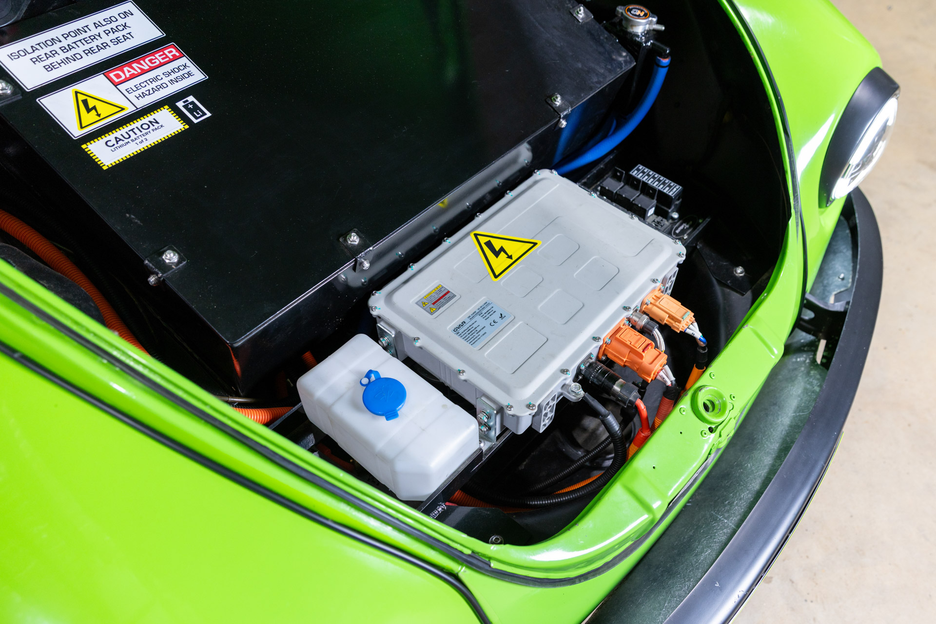 6x batteries in front where old fuel tank was. Other 10 batteries in rear parcel shelf area. Orion 2 BMS controls the 96 cells and continuously monitors voltages, Amps in and out of battery pack and individual cell temperatures.